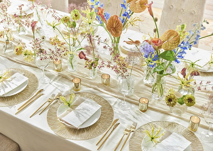 食器やグラス、装花、引き出物、席札などをテーブルに配置します。