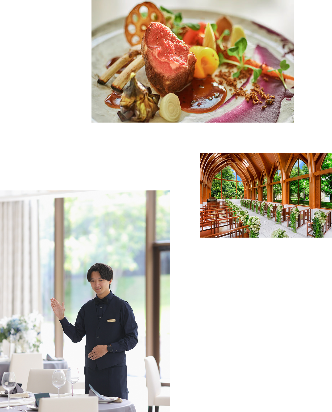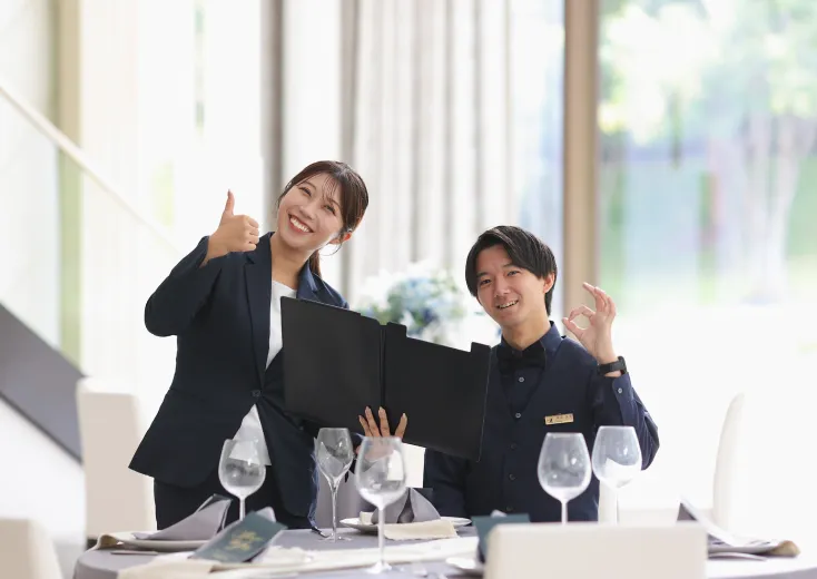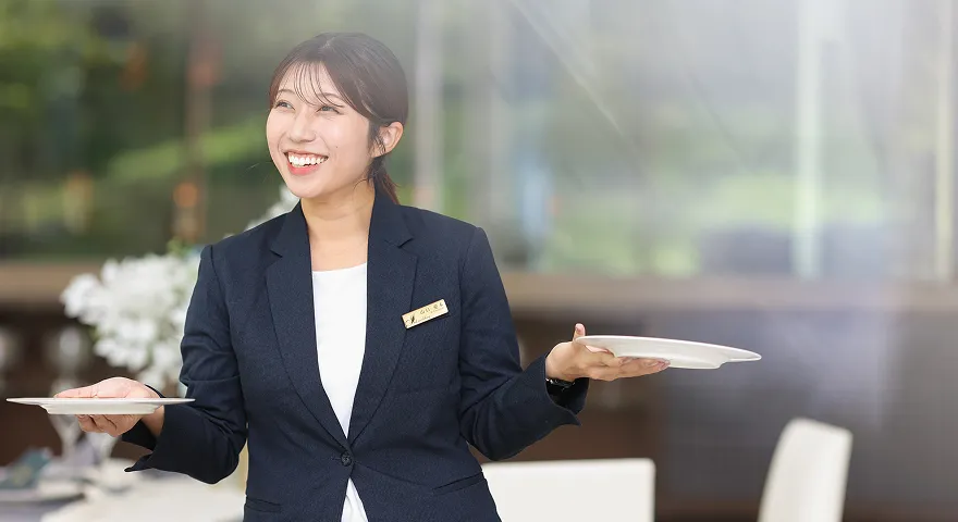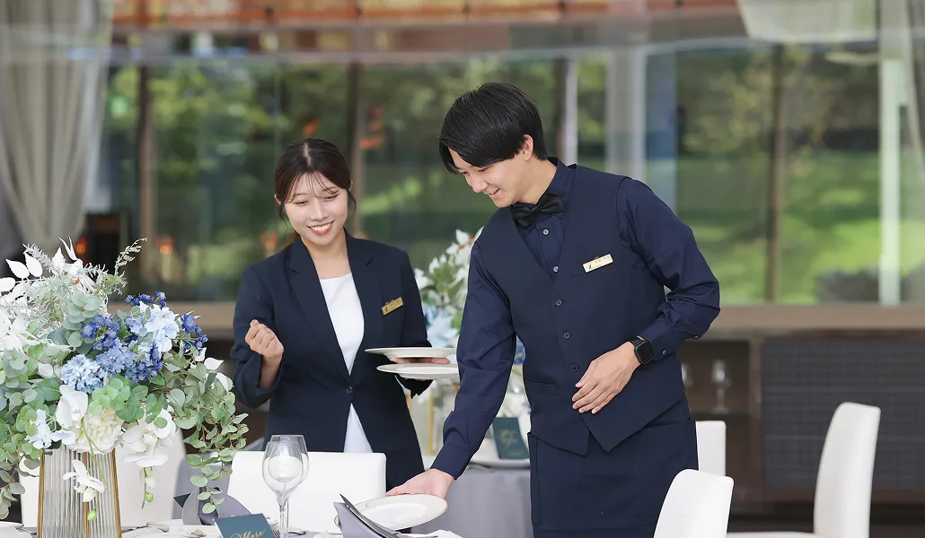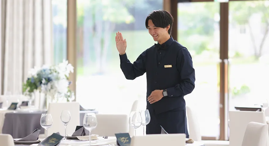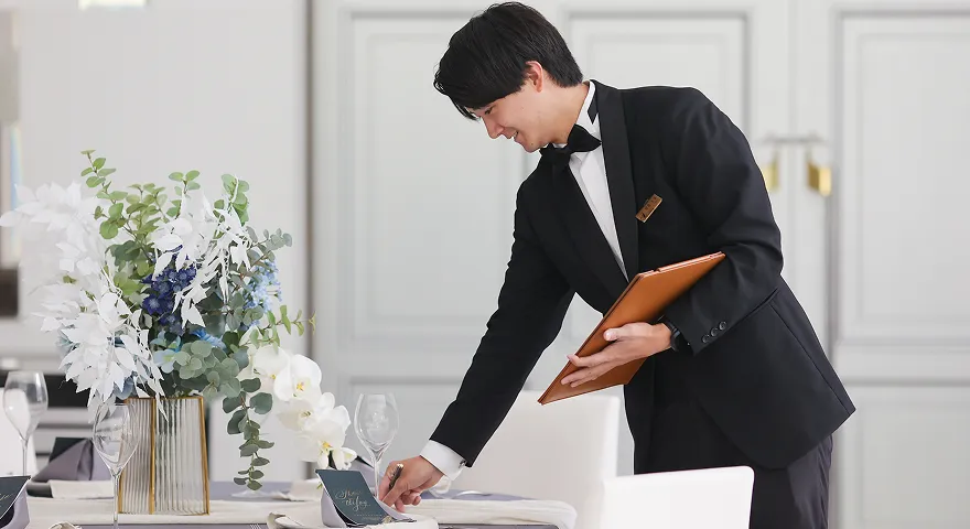 ゲストを笑顔で出迎え、食事や飲み物の提供、会場のご案内などを行います。