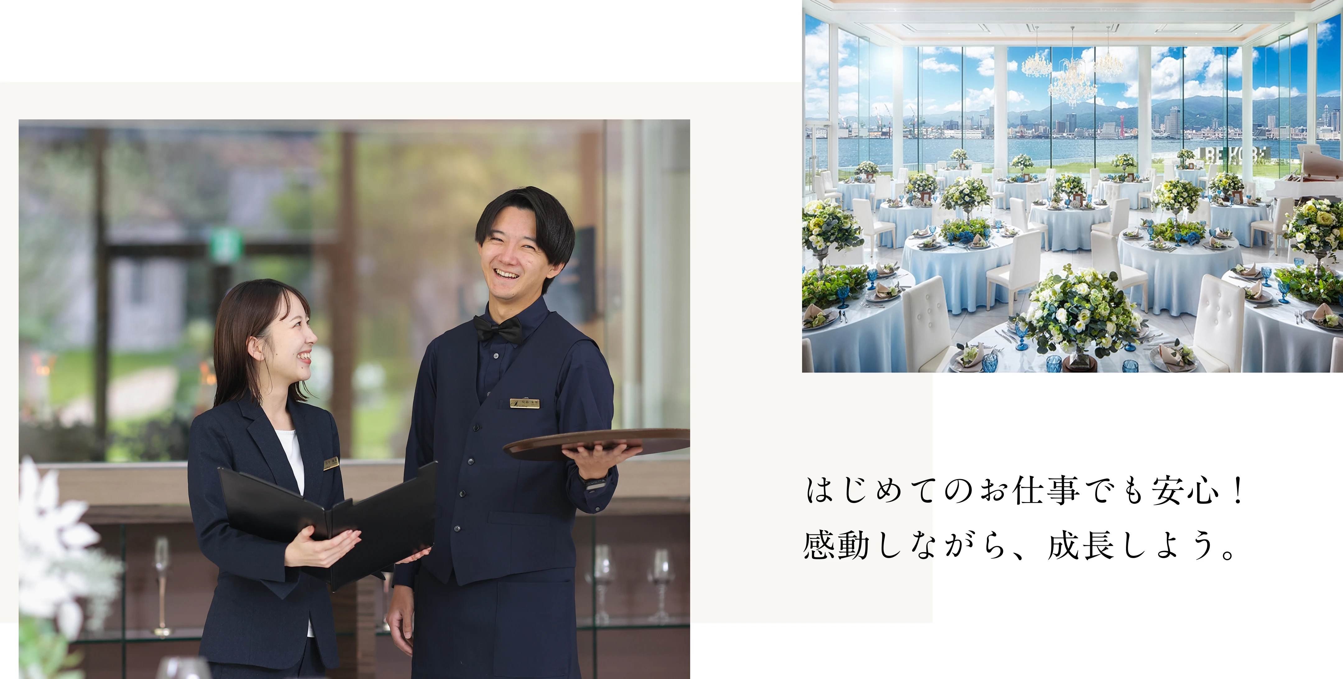 プラスアルファのサービスで、ゲストの驚いた顔や喜んでくれた顔を見れた時や、親御様や親族の方が感動して泣いてくださった時、特に「この仕事をしてよかったな」と思います。また、披露宴会場で迎賓する前に、アルバイトみんなで団結して円陣を組む時も、毎回「頑張ろう!」と気合が入ります。
